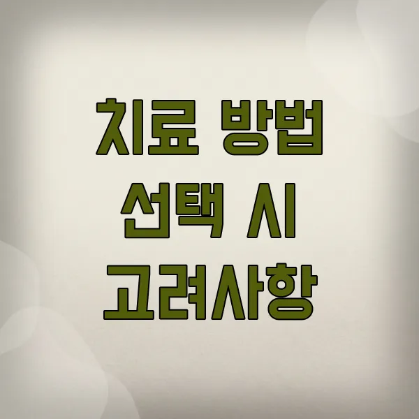 치료 방법 선택 시 고려사항